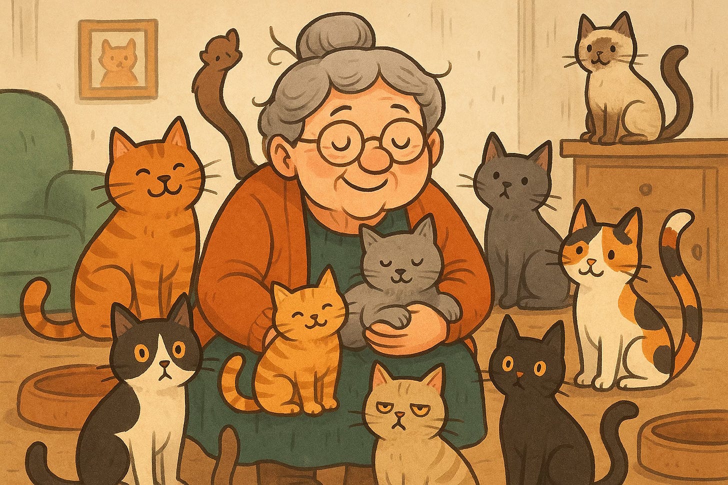 Mia madre si lamenta sempre quando andiamo da zia Maria, perché è allergica ai gatti — e zia Maria, secondo l’altra mia zia, è proprio la gattara classica!