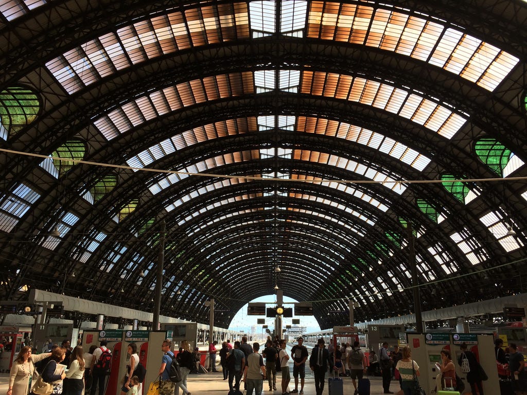 Milano CentraleExploring MilanParola del Giorno (#PdG)Apr 28, 2021ShareI snapped this photograph when I was in Milano several years ago while waiting to board my train back to Rome. I love the green, white, and red tones high above the platforms. Have you been to Milan? What do you recommend?PreviousNext